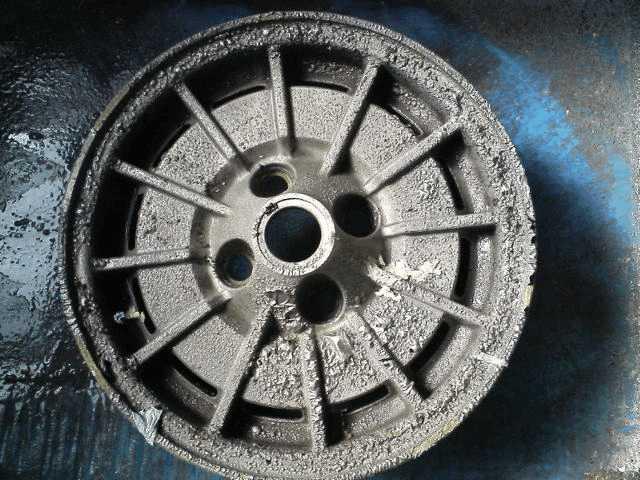 アルファロメオ純正マグホイール(かなり古い)のレストアです。