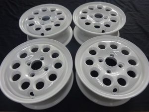 粉体塗装⇒新品と同工程。粉体でホイール全体を覆いサビの発生を防ぎます。 密着力・耐久力・防錆性バツグン!!