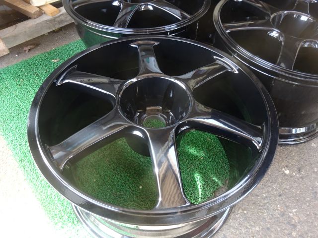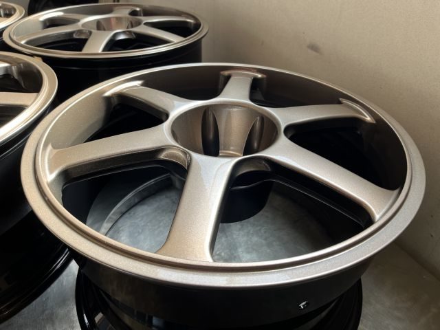 粉体塗装⇒新品と同工程。粉体でホイール全体を覆いサビの発生を防ぎます。 密着力・耐久力・防錆性バツグン!!