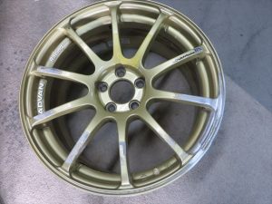 ヨコハマアドバンRSアルミホイールのリム部カケ、ガリキズ修理及び塗装。